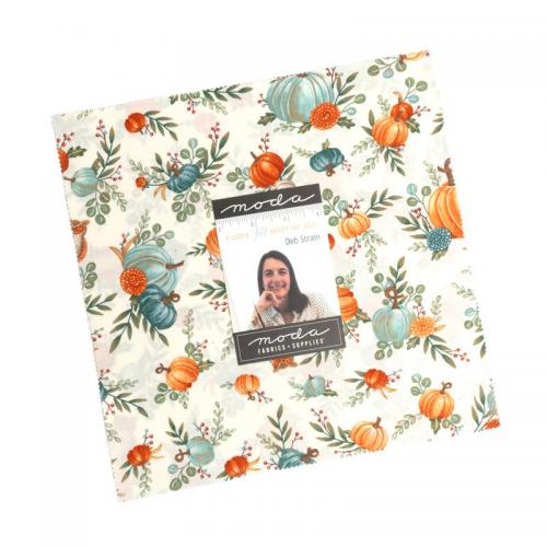 Layer cakes are 10"-square blocks of assorted fabrics which come exclusively from one manufactured line. The number of blocks included in the pack varies depending on the number of bolts in the fabric line. On average there are 40 per pack, but the number can vary from 35-50. All fabrics are 100% cotton.