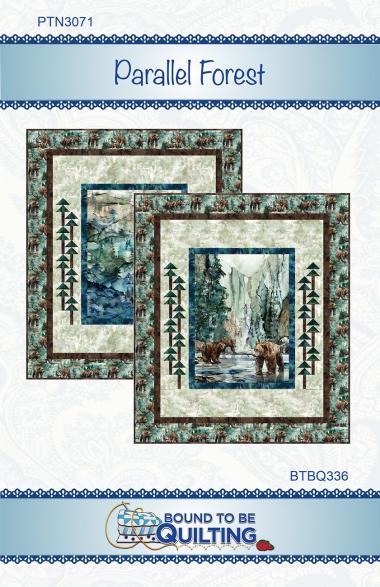 An outdoor themed quilt using either a panel (36) or running yardage in the center. Tree blocks bookend each side of the panel. Finished size is 68 x 79.