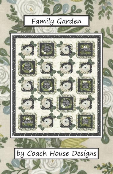 All pieced lap quilt featuring the slate panel from Deb Strain's Happiness Blooms fabric line. The panel blocks are framed and surrounded by floral blocks.
